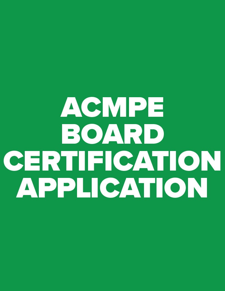 - MGMA Membership is required. Purchase your ACMPE Board Certification application (on this page).