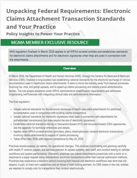 In March 2026, the Department of Health and Human Services (HHS), through the Centers for Medicare & Medicaid Services (CMS), finalized a long-awaited rule establishing national standards for the electronic exchange of clinical documentation used in healthcare claims attachments. It aims to move the industry away from manual processes involving fax, mail, and portal uploads, and to speed up claims processing and reduce overall administrative burden. The rule adopts standards under HIPAA administrative simplification requirements and addresses longstanding inefficiencies with integrating clinical data and administrative information.