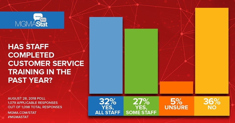 This week's MGMA Stat poll asked healthcare leaders if their staff has completed customer service training in the past year.