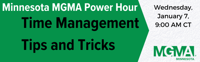 Join us for Minnesota MGMA’s Power Hour, where you can connect with board members, share challenges, and exchange ideas with fellow medical group managers on January 7, 2026 at 9:00 AM CT. This session will spotlight practical time management tips and tricks tailored for busy healthcare leaders to help you prioritize effectively, streamline workflows, and stay focused amid competing demands. It’s an open space to learn more about the chapter, gain valuable insights, and walk away with strategies you can immediately put into practice.