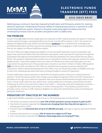 MGMA advocates for improvements to the Merit-based Incentive Payment System (MIPS) to reduce overall group practice burden, simplify scoring complexities, and refine it from the current one-size-fits-all reporting program to a system based on clinically relevant and efficient metrics. MIPS should support groups in their transition to alternative payment models (APMs) by creating an on-ramp to voluntary participation.