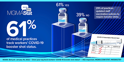 The poll had 983 applicable responses. (Find all our COVID-19-related MGMA Stat data stories here.)